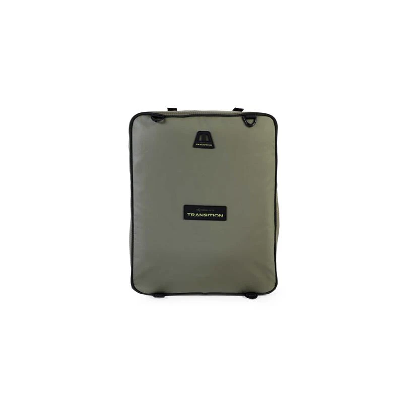 Ce sac est parfait pour les pêcheurs souhaitant un sac à profil bas offrant un accès facile à votre matériel. Les bénefices de son profil bas sont une excellente stabilité sur les berges en pentes mais également de parfaitement se ranger sous votre bedchair. Il est pourvus de deux boucles en velcro sur el dessus du sac afin d’y fixer épuisette et piques, des anneaux sont également présent ainsi que notre étuis Transition compatible avec tous nos nouveaux tapis de réception Transition.